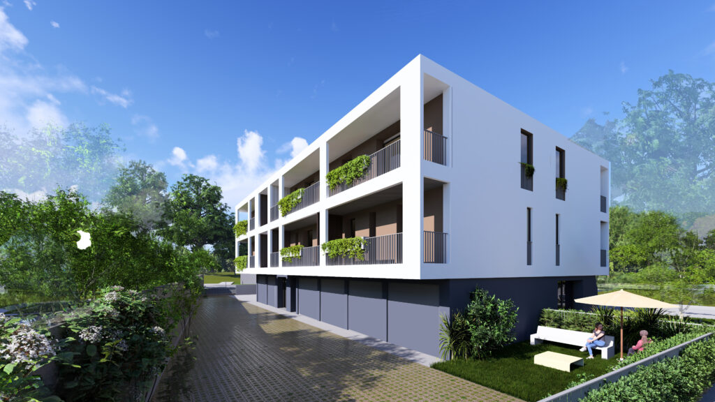 Il progetto si distingue per le ampie logge incorniciate, elemento che caratterizza la facciata donando ritmo, profondità ed eleganza. Le generose terrazze, arricchite da fioriere integrate, diventano una naturale estensione della zona giorno, creando un dialogo armonioso tra interno ed esterno.